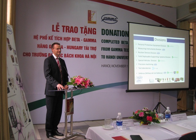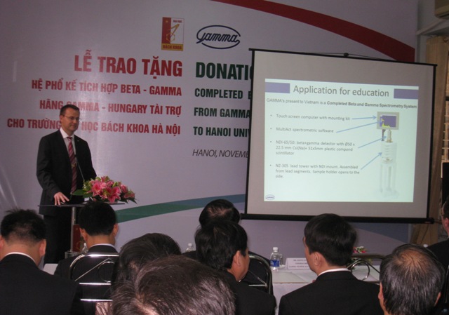 Ông Zsitnyanyi Attila, Tổng Giám đốc tập đoàn Gamma bày tỏ: “Trong tất cả các loại thiết bị, chúng tôi chọn thiết bị này vì nó vừa có tính chất giáo dục vừa có tính thực tiễn. Trường Đại học Bách Khoa Hà Nội có điểm xuất phát khá tốt về việc đào tạo vật lý nguyên tử. Tôi hi vọng đây là bước khởi đầu. Và tôi cũng mong muốn thiết bị đo như thế này sẽ còn đến được với nhiều sinh viên ở nhiều trường đại học của Việt Nam hơn”.