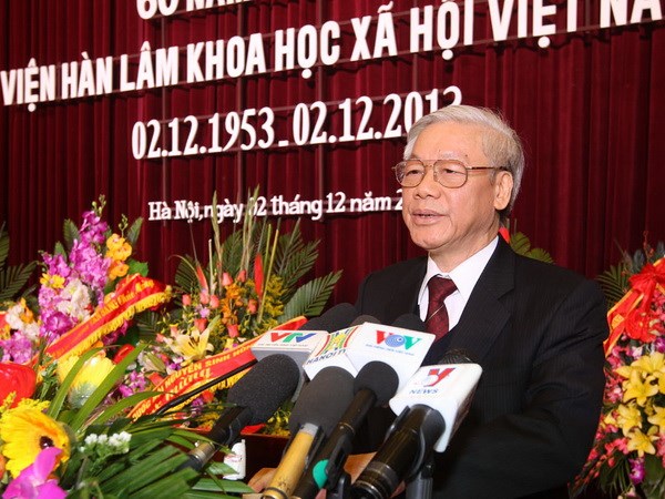 (VOV5) - Phát biểu tại lễ kỷ niệm 60 năm thành lập Viện Hàn lâm Khoa học Xã hội Việt Nam được tổ chức trọng thể sáng 2/12 tại Hà Nội, Tổng Bí thư Ban chấp hành Trung ương Đảng Cộng sản Việt Nam Nguyễn Phú Trọng biểu dương những kết quả, thành tích và đóng góp quan trọng của Viện Hàn lâm Khoa học Xã hội Việt Nam qua các thời kỳ. Theo đó, Viện đã hoàn thành xuất sắc nhiệm vụ mà Nhà nước và nhân dân giao phó, xứng đáng là một cơ quan nghiên cứu khoa học xã hội đầu ngành của cả nước.