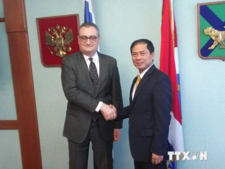 | Thứ trưởng Bộ Ngoại giao Việt Nam Bùi Thanh Sơn và Thứ trưởng Bộ Ngoại giao Liên bang Nga I.V.Morogulop. (Ảnh: TTXVN phát) |