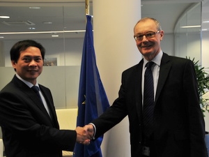 | Thứ trưởng Bộ Ngoại giao Việt Nam Bùi Thanh Sơn và Giám đốc điều hành Cơ quan đối ngoại Châu Âu (EEAS) David O’Sullivan. (Ảnh: Đại sứ quán Việt Nam tại Bỉ) |