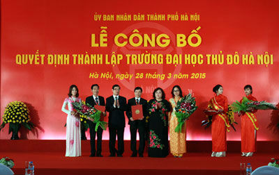 Ủy ban nhân dân thành phố Hà Nội ngày 28/3 tổ chức lễ công bố và trao quyết định thành lập trường Đại học Thủ đô Hà Nội. Năm 2014, Thủ tướng Chính phủ đồng ý thành lập trường Đại học Thủ đô Hà Nội. Trường Đại học Thủ đô Hà Nội được thành lập trên cơ sở nâng cấp Trường Cao đẳng Sư phạm Hà Nội. Đại học Thủ đô Hà Nội sẽ được xây dựng tại huyện Đông Anh, quy mô đào tạo 9.500 sinh viên. Các ngành nghề đào tạo của Trường Đại học Thủ đô Hà Nội được chia thành 2 giai đoạn với các nhóm ngành: Sư phạm và quản lý giáo dục; công nghệ và môi trường; văn hóa và du lịch./.