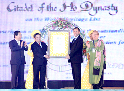 Đại diện UNESCO trao bằng công nhận Thành nhà Hồ là Di sản thế giới cho
