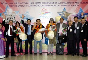 (VOV5) - Sáng 1/1, Sở Văn hóa Thể thao và Du lịch thành phố Hồ Chí Minh và Cục Hàng không Việt Nam tổ chức lễ đón đoàn khách du lịch đầu tiên đến thành phố năm 2014 tại ga sân bay Tân Sơn Nhất.