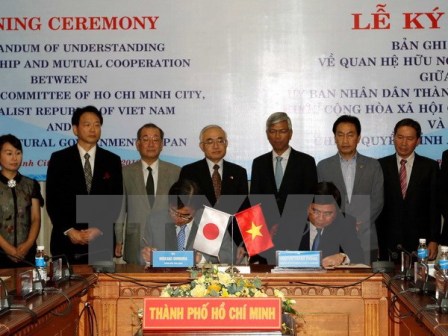 (VOV5) - Chiều 13/9, tại Thành phố Hồ Chí Minh, Chủ tịch UBND thành phố Nguyễn Thành Phong và ông Hideaki Ohmura, Thống đốc tỉnh Aichi ( Nhật Bản), ký Bản ghi nhớ về quan hệ hữu nghị và hợp tác giữa UBND Thành phố Hồ Chí Minh và Chính quyền tỉnh Aichi.