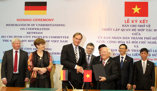 | Lễ kí và trao Biên bản ghi nhớ hợp tác giữa TP HCM và Thành phố Leigzig. Ảnh: VOV |