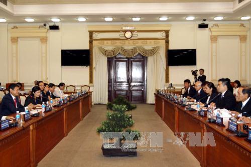 | Phó Chủ tịch UBND Thành phố Hồ Chí Minh Huỳnh Cách Mạng tiếp ông Taizo Mikazuki, Thống đốc tỉnh Shiga, Nhật Bản (TTXVN) |