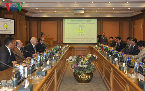 Thực hiện thỏa thuận hợp tác giữa Thanh tra Chính phủ Việt Nam và Cơ quan Giám sát hành chính Ai Cập (ACA), từ ngày 02-10/4, đoàn đại biểu ngành Thanh tra Việt Nam do Phó Tổng Thanh tra Chính phủ Đặng Công Huẩn làm trưởng đoàn, đi thăm và trao đổi kinh nghiệm chỉ đạo điều hành công tác thanh tra, giám sát và phòng chống tham nhũng với Cơ quan giám sát hành chính Ai Cập.