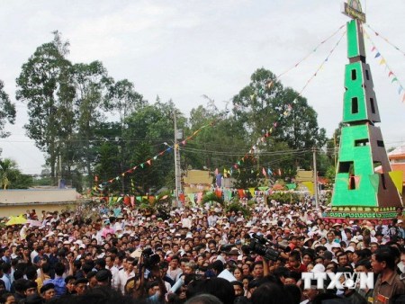 Tín đồ dự Đại lễ Phật giáo Hòa Hảo ở An Giang.