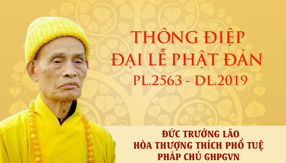 Năm nay, hòa trong không khí hân hoan của cộng đồng Phật giáo trên toàn thế giới kỷ niệm ngày Vesak trọng đại, Giáo hội Phật giáo Việt Nam vô cùng vinh dự là nước chủ nhà đăng cai tổ chức Đại lễ Vesak Liên hợp quốc lần thứ 16, PL. 2563- DL. 2019. Thay mặt Hội đồng Chứng minh, Hội đồng Trị sự, và toàn thể Tăng Ni, Phật tử Việt Nam, tôi hoan nghênh và nhiệt liệt chào mừng Chư tôn đức lãnh đạo các Giáo hội Tăng già, các tổ chức hệ phái truyền thừa Phật giáo từ khắp các Châu lục đã hội tụ về Việt Nam lần thứ 3 kỷ niệm ngày Vesak Liên hợp quốc. Đây là cơ hội quý báu để chúng ta cùng nhau tăng trưởng niềm tin vào chân lý giải thoát, phát huy giá trị những di sản mà Đức Thế tôn đã để lại cho nhân loại chúng ta trong hệ thống tư tưởng giáo lý vô giá về trí tuệ, lòng từ bi, triết lý vô ngã, tinh thần bất bạo động, những giá trị hòa bình và phát triển bền vững.