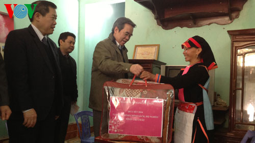(VOV5) - Thống đốc Ngân hàng Nhà nước Nguyễn Văn Bình trao tặng 3 tỷ đồng cho tỉnh Lai Châu. Theo đó hơn 3.900 hộ nghèo, hộ gia đình chính sách của tỉnh được nhận mỗi xuất quà trị giá 600 nghìn đồng, bao gồm bánh kẹo, mì chính, chăn ấm và 300 nghìn đồng tiền mặt.