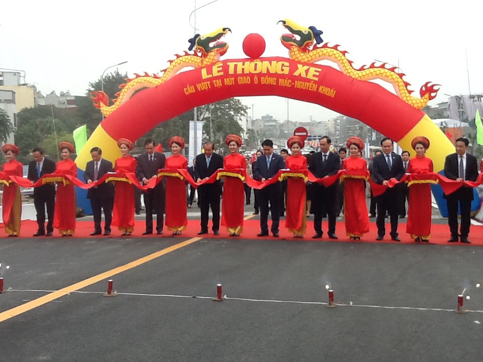 Phát biểu tại lễ thông xe, Chủ tịch Ủy ban nhân dân thành phố Hà Nội Nguyễn Đức Chung biểu dương Sở giao thông vận tải Hà Nội và các đơn vị thi công đã hoàn thành đúng tiến độ. Cầu vượt Ô Đông Mác - Nguyễn Khoái được xem là cầu thi công nhanh kỷ lục. Chủ tịch Ủy ban nhân dân thành phố Hà Nội Nguyễn Đức Chung nhấn mạnh công trình cầu vượt Ô Đông Mác - Nguyễn Khoái là 1 trong 8 công trình giao thông cấp bách của thành phố Hà Nội, góp phần giảm ùn tắc, đảm bảo giao thông an toàn trên địa bàn thành phố Hà Nội. Chủ tịch Ủy ban nhân dân thành phố Hà Nội Nguyễn Đức Chung đề nghị Sở Giao thông vận tải Hà Nội tăng cường tuyên truyền ý thức chấp hành Luật an toàn giao thông tới người dân.