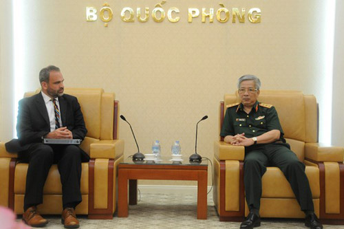 | Thứ trưởng Bộ Quốc phòng Việt Nam Nguyễn Chí Vịnh tiếp Phó Trợ lý Bộ trưởng Quốc phòng Hoa Kỳ Thomas Ross: (Ảnh:mod.gov.vn) |