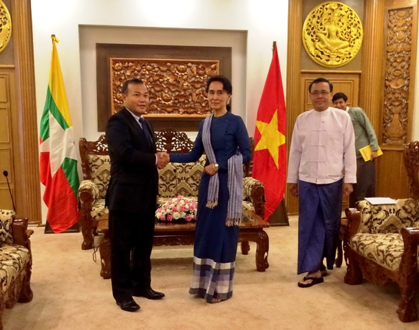 | Thứ trưởng Ngoại giao Vũ Hồng Nam hội kiến bà Aung San Suu Kyi (Ảnh: tgvn.com.vn) |