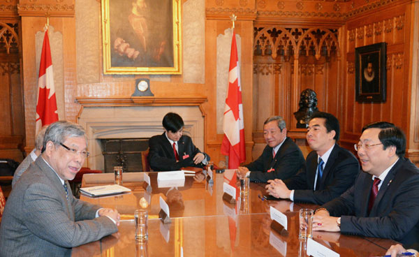 Tại Canada và Mỹ, Đoàn đã có buổi làm việc với giới chức lãnh đạo sở tại như Thứ trưởng thứ nhất Bộ Ngoại giao, Thương mại và Phát triển Canada Daniel Jean, Tổng Vụ trưởng Bộ Công dân & Nhập cư Canada Mark Davidson, Thượng nghị sỹ (TNS) bang California – Mỹ Loni Hancock và Thị trưởng thành phố Berkeley Tom Bates… để trao đổi về tình hình cộng đồng người Việt tại Canada, Mỹ, quan hệ song phương và các vấn đề khu vực cùng quan tâm. Nói chung, tại các cuộc gặp, Bạn đều đánh giá cao mục đích, ý nghĩa của chuyến đi cũng như chính sách của Đảng và Nhà nước đối với NVNONN, khẳng định đóng góp của cộng đồng NVNONN trong việc phát triển kinh tế, ổn định xã hội sở tại, cũng như thúc đẩy quan hệ hữu nghị giữa Việt Nam với các nước.