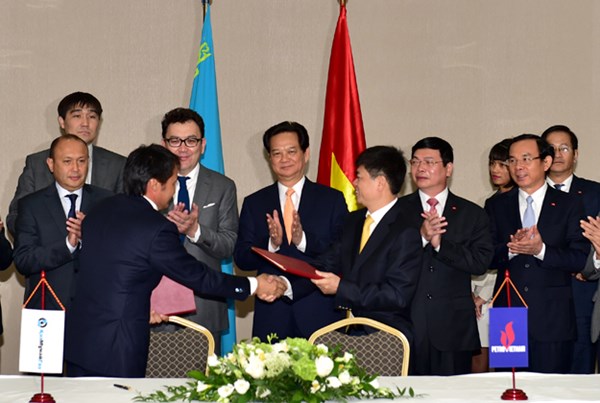 Thủ tướng Nguyễn Tấn Dũng chứng kiến Lễ ký thỏa thuận hợp tác giữa Tập đoàn Dầu khí Việt Nam với Công ty Kaztransgas. Ảnh: VGP/Nhật Bắc