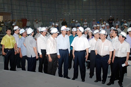 (VOV5) - Chiều nay, 24/05 Thủ tướng Nguyễn Tấn Dũng kiểm tra tiến độ xây dựng Nhà Quốc hội và Hội trường Ba Đình (mới). Phát biểu tại buổi làm việc, Thủ tướng Nguyễn Tấn Dũng khẳng định: Nhà Quốc hội là công trình quy mô, hiện đại, có ý nghĩa chính trị đặc biệt quan trọng của đất nước, một công trình mang tính biểu tượng Quốc gia. Thủ tướng đánh gia cao việc Bộ Xây dựng và các nhà thầu làm đúng trình tự trong tiến hành các khâu đấu thầu, lựa chọn tư vấn thiết kế, thi kiến trúc, đồng thời tiến hành khảo cổ chặt chẽ theo quy định của pháp luật. Thủ tướng Nguyễn Tấn Dũng nhấn mạnh: Rất mong các đơn vị cố gắng hoàn thành tốt công việc. Trong giai đoạn nước rút này, chúng ta phát huy cái đã làm tốt, tiếp tục làm tốt, vừa đảm bảo quyết tâm đạt tiến độ mà các lãnh đạo các đơn vị khẳng định với tôi hôm nay. Chúng ta đạt tiến độ những phải đảm bảo an toàn lao động và chất lượng công trình.