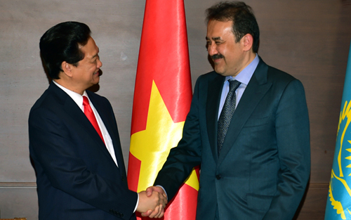 Cùng ngày, Thủ tướng Nguyễn Tấn Dũng có cuộc gặp, làm việc với Thủ tướng Kazakhstan Karim Massimov. Thủ tướng Nguyễn Tấn Dũng khẳng định Việt Nam luôn quan tâm phát triển quan hệ hữu nghị truyền thống giữa hai nước và coi Kazakhstan là đối tác quan trọng tại khu vực Trung Á. Thủ tướng Nguyễn Tấn Dũng đề nghị Kazakhstan ủng hộ việc duy trì hòa bình, ổn định, an ninh an toàn tự do hàng hải hàng không tại Biển Đông, giải quyết tranh chấp thông qua các biện pháp hòa bình, tôn trọng luật pháp quốc tế, Công ước Liên hợp quốc về Luật Biển năm 1982, thực hiện nghiêm túc và đầy đủ Tuyên bố về cách ứng xử của các bên ở Biển Đông (DOC) và xây dựng Quy tắc ứng xử tại Biển Đông (COC). Thủ tướng Kazakhstan khẳng định lãnh đạo và Chính phủ Kazakhstan luôn ủng hộ việc mở rộng và tăng cường hợp tác với Việt Nam, sẽ nỗ lực để hợp tác giữa hai nước đi vào chiều sâu và hiệu quả. Hai Thủ tướng nhất trí cần nâng cao hơn nữa hiệu quả hoạt động Uỷ ban liên Chính phủ Việt Nam – Kazakhstan về hợp tác kinh tế - thương mại và khoa học – kỹ thuật để tạo thuận lợi mở rộng hợp tác trong các lĩnh vực tiềm năng của hai bên, trong đó có hợp tác khai thác và chế biến dầu khí giữa Petrovietnam và KazMunaiGaz tại Kazakhstan, cũng như tại nước thứ ba; tăng cường trao đổi thương mại, tạo điều kiện cho các mặt hàng nông thủy hải sản là thế mạnh của Việt Nam nhập khẩu vào Kazakhstan.