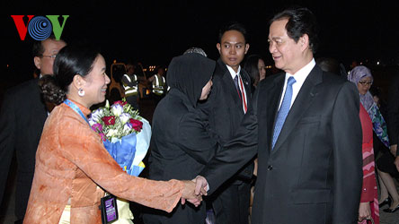 (VOV5) - Tối 8/10, Thủ tướng Chính phủ Nguyễn Tấn Dũng và Đoàn đại biểu Việt Nam đã tới thủ đô Bandar Seri Begawan của Brunei, bắt đầu tham dự Hội nghị Cấp cao Hiệp hội các quốc gia Đông Nam Á (ASEAN) lần thứ 23 và các Hội nghị cấp cao liên quan.