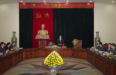 (VOV5) - Thủ tướng Chính phủ Nguyễn Tấn Dũng và lãnh đạo một số Bộ, ngành Trung ương hôm nay thăm và làm việc với lãnh đạo chủ chốt tỉnh Ninh Bình về tình hình kinh tế-xã hội của địa phương.