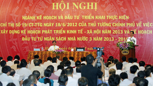 (VOV5)- Sáng nay tại Trung tâm hội nghị quốc gia Mỹ Đình, Hà Nội, Thủ tướng Nguyễn Tấn Dũng tham dự Hội nghị ngành kế hoạch đầu tư toàn quốc hướng dẫn triển khai xây dựng Kế hoạch phát triển kinh tế xã hội năm 2013 và Kế hoạch đầu tư từ ngân sách nhà nước trong 3 năm (2013-2015).