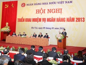 Điều hành chặt chẽ tỷ giá và thị trường ngoại hối, bảo đảm giá trị đồng Việt Nam; quản lý hiệu quả thị trường vàng, góp phần vào mục tiêu giữ vững sự ổn định kinh tế vĩ mô. Thủ tướng Nguyễn Tấn Dũng nhấn mạnh: “Làm tốt hơn chức năng nhiệm vụ của ngân hàng nhà nước, tức là quản lý nhà nước, tốt hơn chức năng ngân hàng Trung ương là điều hành chính sách tiền tệ. Ngân hàng mẹ của các ngân hàng đây thì trước hết thực hiện tốt hơn nữa, hiệu quả hơn nữa vững chắc hơn nữa điều hành chính sách tiền tệ. Nhưng cái chung nhất là bám vào điều hành chính sách tiền tệ linh hoạt hơn, hiệu quả hơn, sát với cuộc sống hơn để đạt được yêu cầu là kiểm soát được lạm phát thấp hơn năm 2012. Đây là quyết tâm của Đảng, của Quốc hội, của Chính phủ.” Tại hội nghị, Thủ tướng Nguyễn Tấn Dũng đã trao Huân chương Lao động hạng Nhì và hạng Ba cho các tập thể và cá nhân có thành tích xuất sắc trong hoạt động của ngành ngân hàng./.