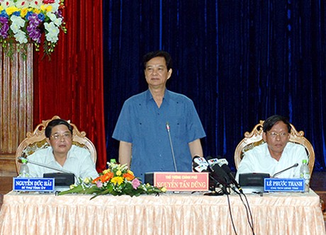 | Thủ tướng Chính phủ Nguyễn Tấn Dũng làm việc với lãnh đạo chủ chốt tỉnh Quảng Nam về tình hình kinh tế-xã hội của địa phương. Ảnh VGP/Nhật Bắc |