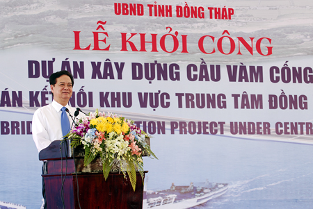 Thủ tướng Nguyễn Tấn Dũng nhấn mạnh: “Chủ trương của Đảng, Nhà nước trong “Công nghiệp hóa, hiện đại hóa” đất nước, trong đó có Khu vực Đồng bằng Sông Cửu long, là một trong những khâu đột phá là đầu tư xây dựng kết cấu hạ tầng đồng bộ, hiện đại. Chính phủ và các Bộ, ngành Trung ương luôn nỗ lực với tính thần này. Ngoài ra, các địa phương, bằng nội lực cùng nhiều nguồn lực để xây dựng các tuyến dường gắn với Xây dựng Nông thôn mới... Đường tới đâu, văn hóa và kinh tế sẽ phát triển tới đó.”
