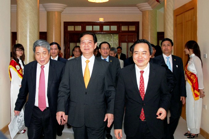| Thủ tướng Nguyễn Tấn Dũng thăm, làm việc với Đại học quốc gia Hà Nội. (Ảnh: CPV) |