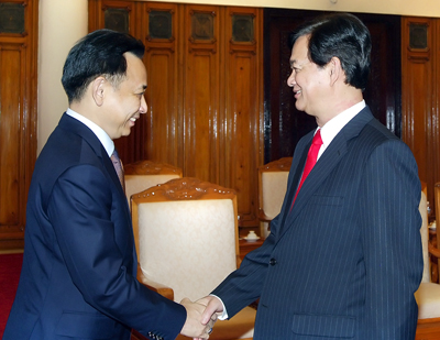 Thủ tướng Nguyễn Tấn Dũng tiếp Bộ trưởng Bộ Thương mại Thái Lan Boonsong Teriyapirom. Ảnh: VGP/Nhật Bắc