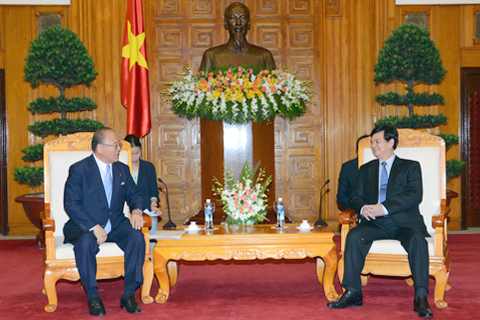 | Thủ tướng Nguyễn Tấn Dũng tiếp ông Takebe Tsutomu, cố vấn đặc biệt Liên minh Nghị sĩ Hữu nghị Nhật-Việt (Ảnh: VGP) |