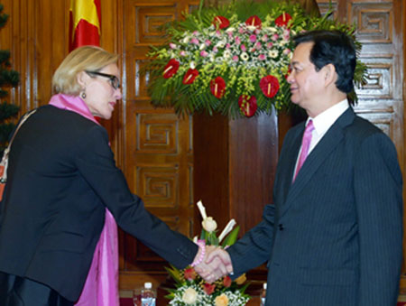 Chào mừng Đại sứ Thụy Điển Camilla Mellander nhận công tác mới tại Việt Nam, Thủ tướng Nguyễn Tấn Dũng khẳng định: chính sách nhất quán của Việt Nam là mong muốn cùng với Thụy Điển nỗ lực đưa quan hệ hai nước ngày càng phát triển, đem lại lợi ích thiết thực cho cả hai bên. Thủ tướng đề nghị hai bên hợp đẩy mạnh các hoạt động trao đổi đoàn các cấp nhằm tăng cường sự hiểu biết, tin cậy lẫn nhau làm nền tảng để đẩy mạnh hợp tác thương mại, đầu tư giữa hai nước. Thủ tướng Nguyễn Tấn Dũng mong muốn Đại sứ Camilla Mellander cũng như Chính phủ Thụy Điển tiếp tục ủng hộ Việt Nam phát triển y tế, giáo dục, môi trường, ứng phó với biến đổi khí hậu; ủng hộ Việt Nam mở rộng hợp tác với Liên minh châu Âu, trong đó có việc đàm phán ký kết Hiệp định thương mại tự do Việt Nam – EU.