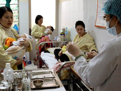 | Khoa nội trú Bệnh viện Nhi Trung ương đang điều trị cho bệnh nhân sởi. Ảnh: Dương Ngọc - TTXVN |