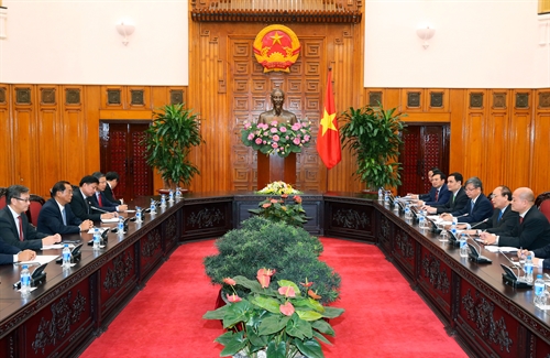 | Thủ tướng Nguyễn Xuân Phúc tiếp đồng chí Xu-phăn Kẹo-mi-xay, Bộ trưởng Bộ Kế hoạch và Đầu tư Lào. Ảnh: Thống Nhất-TTXVN |