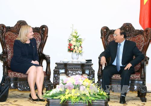 Tại buổi tiếp, Thủ tướng Nguyễn Xuân Phúc đánh giá cao vai trò của Bà Đại sứ trong năm đầu tiên nhận nhiệm vụ tại Việt Nam, đóng góp tích cực và hiệu quả vào việc củng cố và tăng cường quan hệ song phương. Thủ tướng mong muốn hai nước tiếp tục thúc đẩy quan hệ thương mại và đầu tư thời gian tới; mong muốn Cộng hòa Ireland hỗ trợ Việt Nam trong lĩnh vực giáo dục và đào tạo; đề nghị Cộng hòa Irelandthúc đẩy EU để Hiệp định thương mại Việt Nam-EU sớm ký kết.