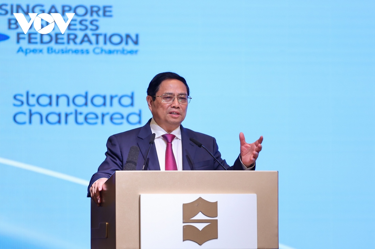 Phát biểu tại diễn đàn, Thủ tướng Phạm Minh Chính thông tin đến các đại biểu về kết quả hội đàm với Thủ tướng Lý Hiển Long, trong đó đánh giá quan hệ hai nước đang trong giai đoạn tốt đẹp và ngày càng được tăng cường, củng cố, thúc đẩy; cho rằng đây là nền tảng, cơ sở, môi trường thuận lợi để các đối tác, các nhà đầu tư tiếp tục phát huy vì lợi ích của mỗi bên và vì quan hệ tốt đẹp Việt Nam-Singapore, trên nguyên tắc “lợi ích hài hòa, rủi ro chia sẻ”.