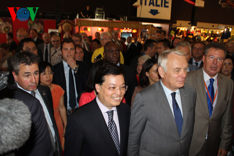 | Thủ tướng Pháp và Đại sứ Việt Nam tại Pháp thăm khu trưng bày Việt Nam |
