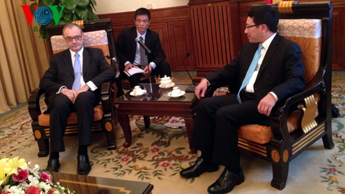 (VOV5) - Chiều 26/3, tại Hà Nội, Phó Thủ tướng - Bộ trưởng Bộ Ngoại giao Phạm Bình Minh đã có cuộc tiếp, hội đàm với Tổng Giám đốc Cơ quan Đối ngoại châu Âu (EEAS) David O'Sullivan đang có chuyến thăm Việt Nam.