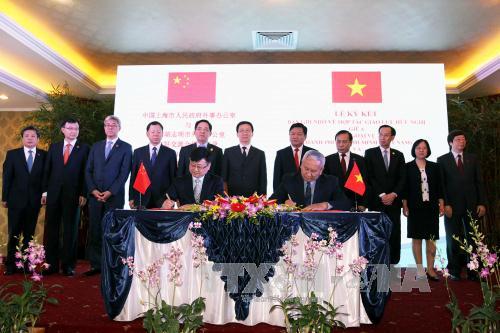 Sau buổi hội đàm, đoàn đại biểu hai bên chứng kiến Lễ ký kết một số thỏa thuận hợp tác giữa 2 thành phố như: Thỏa thuận về tăng cường giao lưu hợp tác hữu nghị giữa thành phố Hồ Chí Minh và thành phố Thượng Hải; Bản ghi nhớ về hợp tác giao lưu hữu nghị giữa Sở Ngoại vụ Thành phố Hồ Chí Minh và Sở Ngoại vụ Chính quyền thành phố Thượng Hải; Bản ghi nhớ về hợp tác giáo dục giữa Sở Giáo dục và Đào tạo Thành phố Hồ Chí Minh và Ủy ban Giáo dục thành phố Thượng Hải; Thỏa thuận hợp tác về “Thúc đẩy phát triển thị trường khoa học và công nghệ” giữa Cục Công tác phía Nam – Bộ Khoa học Công nghệ Việt Nam và Ủy ban Khoa học và Công nghệ thành phố Thượng Hải.
