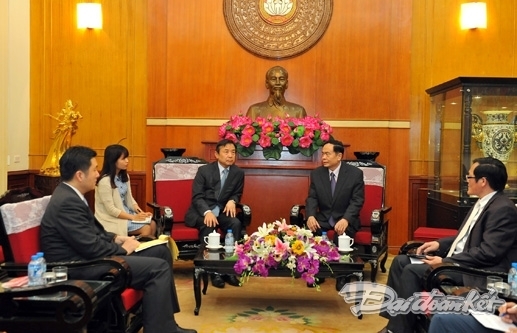 | Phó Chủ tịch Ủy ban Trung ương Mặt trận Tổ quốc Việt Nam Trần Thanh Mẫn thân mật tiếp ông Park Sang - Sik, Công sứ Đại sứ quán Hàn Quốc tại Việt Nam và đoàn công tác (Ảnh: daidoanket.vn) |