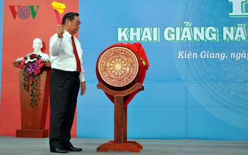 (VOV5) - Phát biểu tại lễ khai giảng năm học mới 2015 - 2016 tại Trường Đại học Kiên Giang, Thường trực Ban Bí thư Trung ương Đảng Lê Hồng Anh biểu dương những nỗ lực của tập thể cán bộ, viên chức, giảng viên, sinh viên nhà trường sau hơn một năm đi vào hoạt động, bước đầu khẳng định được vị trí, vai trò của mình trong hệ thống trường đại học cả nước.