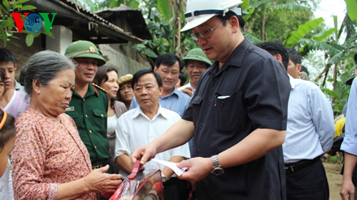 Phó Thủ tướng đánh giá cao những nỗ lực của chính quyền và nhân dân địa phương trong việc chủ động sơ tán người dân đến nơi an toàn, nhanh chóng khắc phục hậu quả sau khi lũ rút. Phó Thủ tướng Hoàng Trung Hải yêu cầu lãnh đạo tỉnh Quảng Nam huy động mọi nguồn lực, tập trung sửa chữa nhà cửa, dọn dẹp vệ sinh môi trường và khẩn trương hỗ trợ nhân dân sớm ổn định cuộc sống: “Chính sách hỗ trợ chung về cơ sở hạ tầng thì Chính phủ sẽ cân đối và hỗ trợ sau. Việc cần làm ngay lúc này là tỉnh cần phải có giống vật nuôi, cây trồng, có thuốc chữa bệnh và có lương thực thực phẩm, không để dân đối, rét. Bên cạnh đó phải xử lý môi trường, tiêu độc khử trùng. Ngoài ra, nhưng những dự án về sạt lở, những dự án về hồ chứa cần xử lý để đảm bảo an toàn cho người dân, tỉnh cần ưu tiên ngân sách để làm các dự án về hồ chứa”.