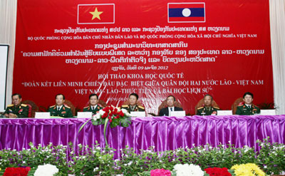 (VOV5)- Nhân kỷ niệm 50 năm ngày thiết lập quan hệ ngoại giao Việt Nam-Lào (5/9/1962-5/9/2012), 35 năm ngày ký Hiệp ước Hữu nghị và Hợp tác Việt Nam-Lào, Lào-Việt Nam, thiết thực kỷ niệm Năm Đoàn kết, Hữu nghị Việt Nam-Lào, ngày 9/11, tại Vientiane, Bộ Quốc phòng hai nước Việt Nam và Lào đã phối hợp tổ chức hội thảo “Đoàn kết liên minh chiến đấu đặc biệt giữa quân đội hai nước Việt Nam-Lào, Lào-Việt Nam - Thực tiễn và bài học lịch sử”.
