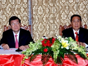 | Chủ tịch nước Trương Tấn Sang và Chủ tịch nước Lào Chummaly Saynhasone. (Ảnh: Hoàng Chương/Vietnam+) |