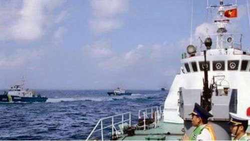 | Tàu kiểm ngư Việt Nam đang bảo vệ ngư dân khai thác biển. Ảnh: báo Pháp luật Việt Nam. |