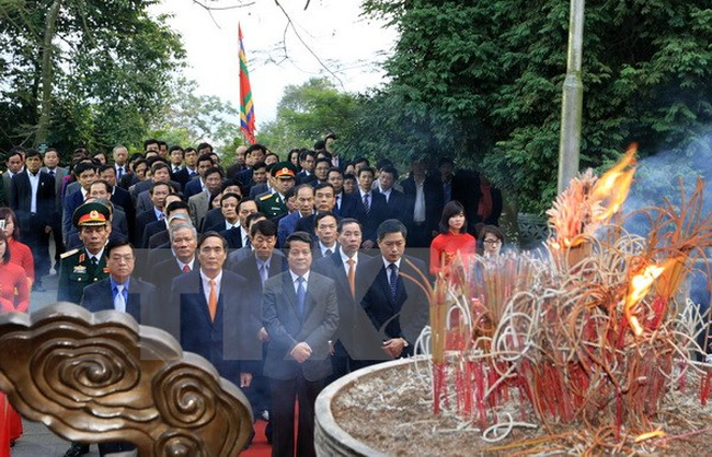 | Lãnh đạo tỉnh Phú Thọ thay mặt đồng bào cả nước dâng hương tưởng niệm các Vua Hùng. (Ảnh: Trung Kiên/TTXVN) |