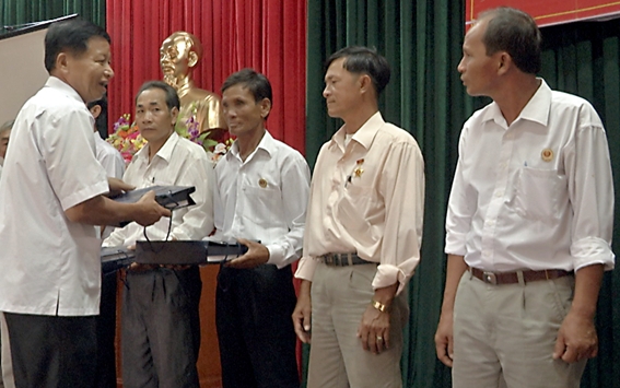 | Ông Nguyễn Xuân An, Chủ tịch Hội CCB tỉnh Quảng Nam trao quà cho CCB tiêu biểu tỉnh Quảng Nam (Ảnh: bienphong.com.vn) |
