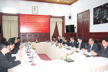 (VOV5) - Nhân dịp Đoàn đại biểu Tòa án nhân dân tối cao nước CHDCND Lào sang Việt Nam tham dự Hội nghị Chánh án các nước ASEAN, ngày 11/12, tại Hà Nội, Chánh án Tòa án nhân dân tối cao Trương Hòa Bình hội đàm với Chánh án Toàn án nhân dân tối cao Lào, ông Khăm Phăn Sít Thị Đăm Pha. Tại buổi hội đàm, hai bên mong muốn tiếp tục trao đổi về sự hợp tác và chia sẻ kinh nghiệm trong xét xử. Hai bên cũng trao đổi một số nội dung về việc tổ chức Hội nghị Tòa án các tỉnh có chung đường biên giới ba nước Lào, Việt Nam, Campuchia sẽ được tổ chức vào cuối tháng 12/2014 tại Lào.