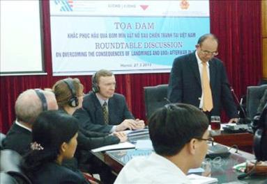 Tại tọa đàm, đại diện cơ quan ngoại giao một số nước, tổ chức quốc tế, tổ chức phi chính phủ phát biểu ý kiến đánh giá cao nỗ lực và kết quả quan trọng đã đạt được của Chính phủ, nhân dân Việt Nam trong khắc phục hậu quả bom, mìn sau chiến tranh thời gian qua. Đồng thời, cam kết mục tiêu, chính sách hỗ trợ đối với chương trình khắc phục hậu quả bom, mìn sau chiến tranh ở Việt Nam. Thứ trưởng Bộ Lao động – Thương binh và Xã hội Bùi Hồng Lĩnh, cho rằng để khắc phục hậu quả bom mìn và an sinh xã hội ở vùng ô nhiễm bom mìn rất cần sự ủng hộ để huy động và tập trung ưu tiên nguồn lực trong nước, quốc tế cho Chương trình. “Để khắc phục hậu quả bom mìn, đối với chương trình này, chúng tôi cần một lượng kinh phí lớn, 700 triệu USD. Chúng tôi tiếp tục triển khai thực hiện các dự án hỗ trợ nạn nhân bom mìn để hòa nhập vào cộng đồng, tuyên truyền giáo dục cho nhân dân phòng tránh tai nạn bom mìn, nhất là các em thiếu nhi và những người hiện nay sống ở vùng bị ô nhiễm bom mìn nặng; thực hiện các dự án rà phá để giải phóng đất đai tạo điều kiện an sinh và xây dựng các công trình phúc lợi; Đưa Trung tâm quản lý dữ liệu khắc phục hậu quả bom mìn đi vào hoạt động”.
