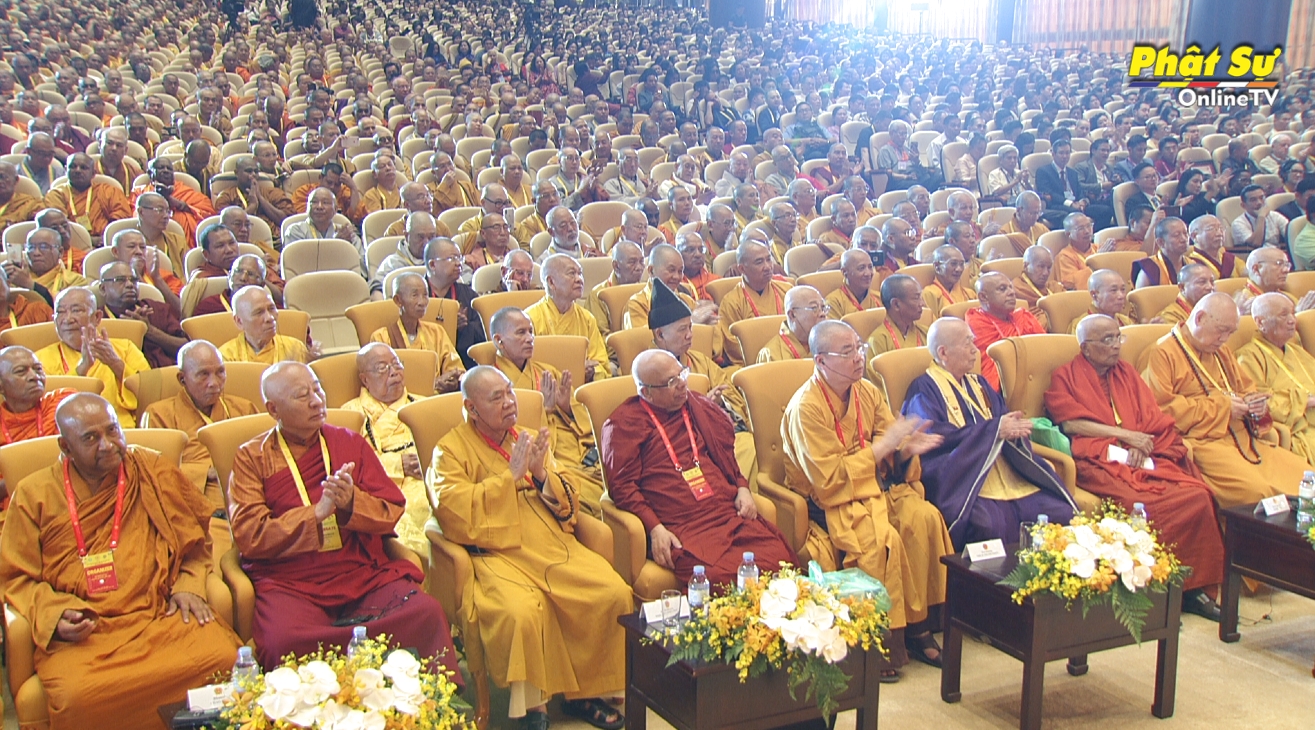 Chúng tôi có mặt Đại hội này, dựa vào Nghị quyết 54/115 đã được thông qua vào ngày 15/12/1999 tại Đại hội đồng Liên Hợp Quốc, kỳ họp thứ 54, chương trình nghị sự 174, trong đó tuyên bố rằng Đại lễ Vesak vào ngày trăng tròn tháng 5 Dương lịch, tương đương tháng 4 Âm lịch, được quốc tế công nhận và tổ chức tại Trụ sở Liên Hợp Quốc và các Văn phòng khu vực từ năm 2000 trở đi. Ngày Đại lễ Vesak Liên Hợp Quốc được tất cả truyền thống Phật giáo đồng tổ chức như lễ Tam hợp thiêng liêng. Đại lễ Vesak góp phần nâng cao sự hiểu biết, chia sẻ và hợp tác lẫn nhau giữa các truyền thống và tổ chức Phật giáo, cũng như các cá nhân, thông qua việc gặp gỡ, đối thoại giữa các nhà lãnh đạo Phật giáo và các học giả nhằm giải quyết những vấn đề quan tâm chung mang tính toàn cầu. Sau khi cùng thảo luận, chúng tôi đồng thuận thông qua và công bố thông điệp về hòa bình, xã hội bền vững và các vấn đề liên quan khác dựa trên lời dạy của Đức Phật về từ bi và trí tuệ.
