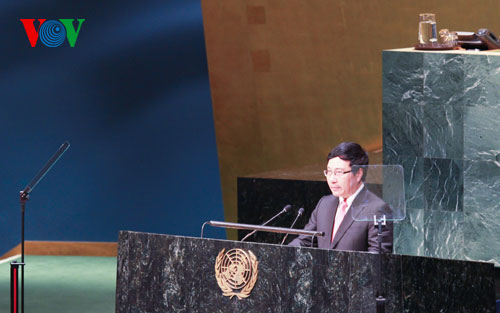 Phó Thủ tướng, Bộ trưởng Ngoại giao Phạm Bình Minh khẳng định Việt Nam luôn coi trọng vai trò, tiếng nói của các thể chế, diễn đàn đa phương, trong đó có Liên hợp quốc, đối với các vấn đề an ninh, phát triển của khu vực và thế giới. Nhằm chia sẻ nỗ lực quốc tế này, Việt Nam đang tích cực tham gia vào quá trình xây dựng Chương trình nghị sự về phát triển sau năm 2015; phát huy vai trò thành viên Hội đồng Nhân quyền LHQ nhiệm kỳ 2014-2016; và lần đầu tiên đã cử lực lượng tham gia Phái bộ gìn giữ hòa bình của LHQ tại Nam Sudan. Việt Nam hiện đang ứng cử vào Hội đồng Kinh tế Xã hội nhiệm kỳ 2016-2018 và Hội đồng Bảo an nhiệm kỳ 2020-2021.